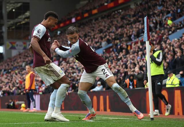 罗杰斯左路传中,沃特金斯抢点未果,埃泽后点漏人,卡什小角度扫射,打穿拉亚的小门,1-0!